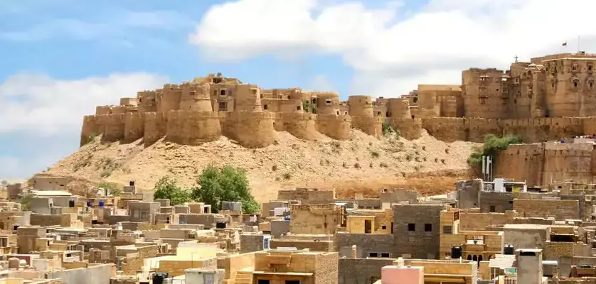 After breakfast, embark on a scenic drive through the arid landscapes of western Rajasthan to Jaisalmer, the Golden City. Upon arrival, check into your hotel and freshen up. Begin your sightseeing with the Jaisalmer Fort, a living fort housing shops, temples, and residences. Explore its winding lanes, intricately carved havelis, and ancient gates.